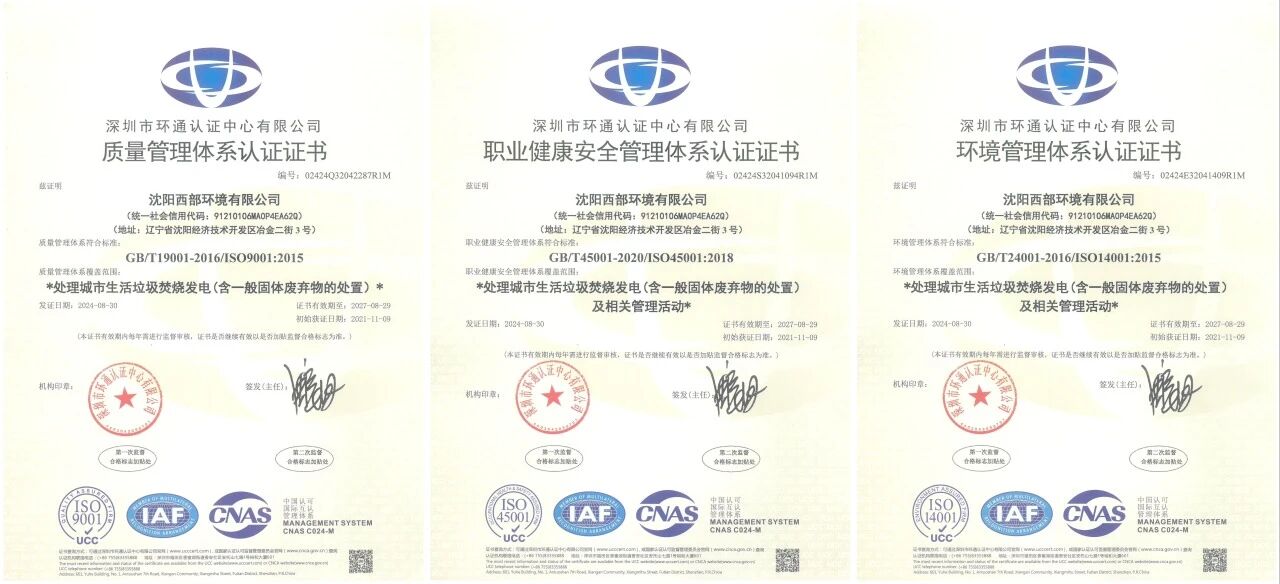 近日,沈阳新基发展有限公司所属沈阳西部环境有限公司顺利通过审核并取得ISO管理体系认证证书。